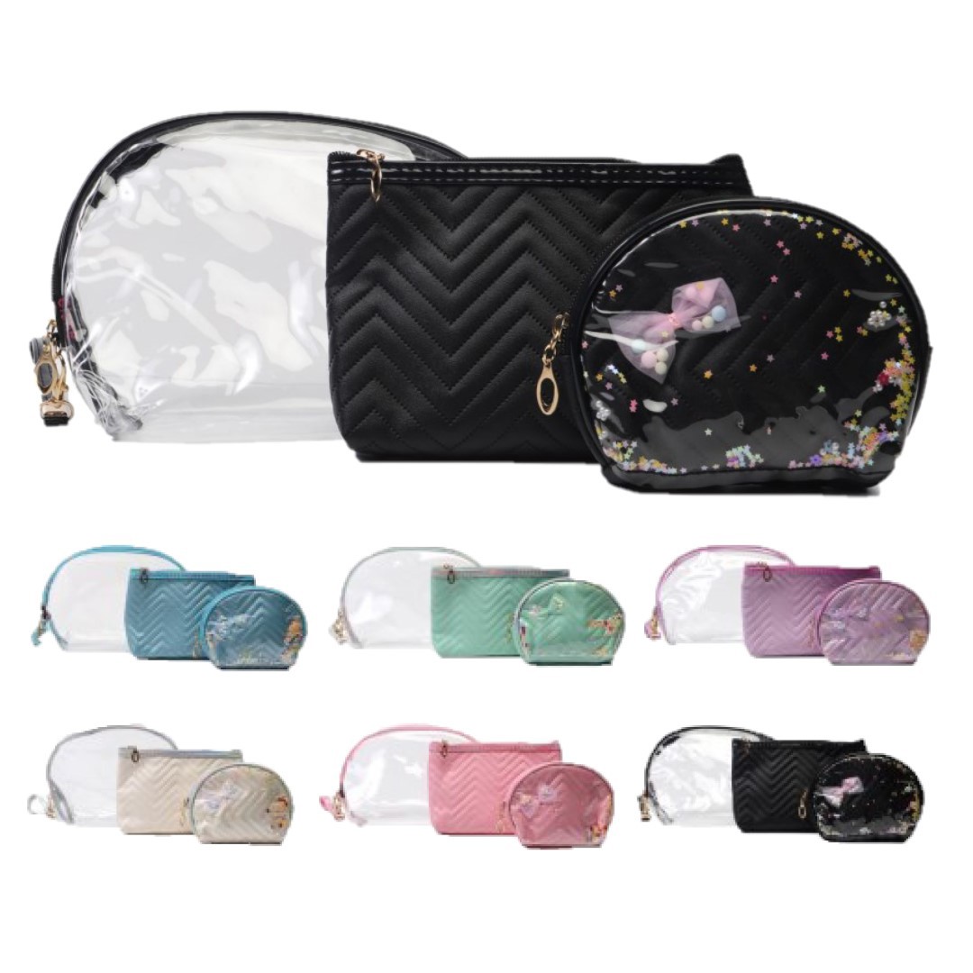 Kit Necessaire com 3 unidades em tamanhos diferentes.