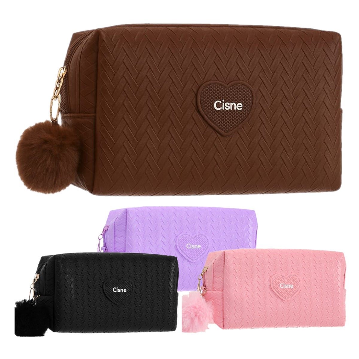 Necessaire Cisne no modelo estojo com coração e pompom no zíper. Possuí um acabamento resistente e com modelos de cores variadas. Prática para seu uso diário composta em poliéster e pvc.