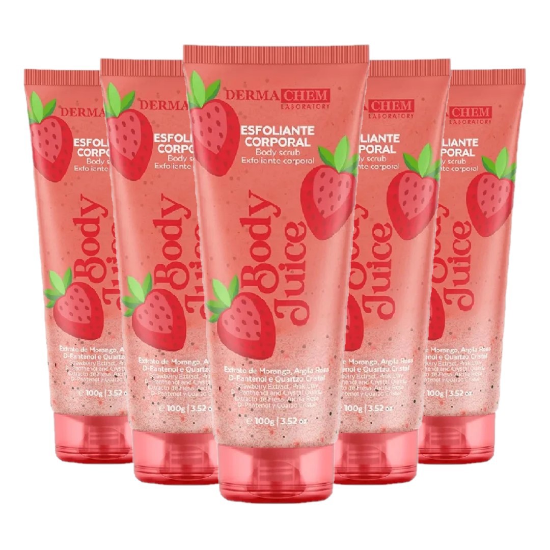 Transforme seu banho em um verdadeiro momento de spa com o novo Esfoliante Corporal Body Juice da Dermachem! Com uma fórmula exclusiva que combina Extrato de Morango, Argila Rosa, D-Pantenol e Quartzo Cristal, este esfoliante proporciona uma limpeza profunda enquanto hidrata e acalma a sua pele.