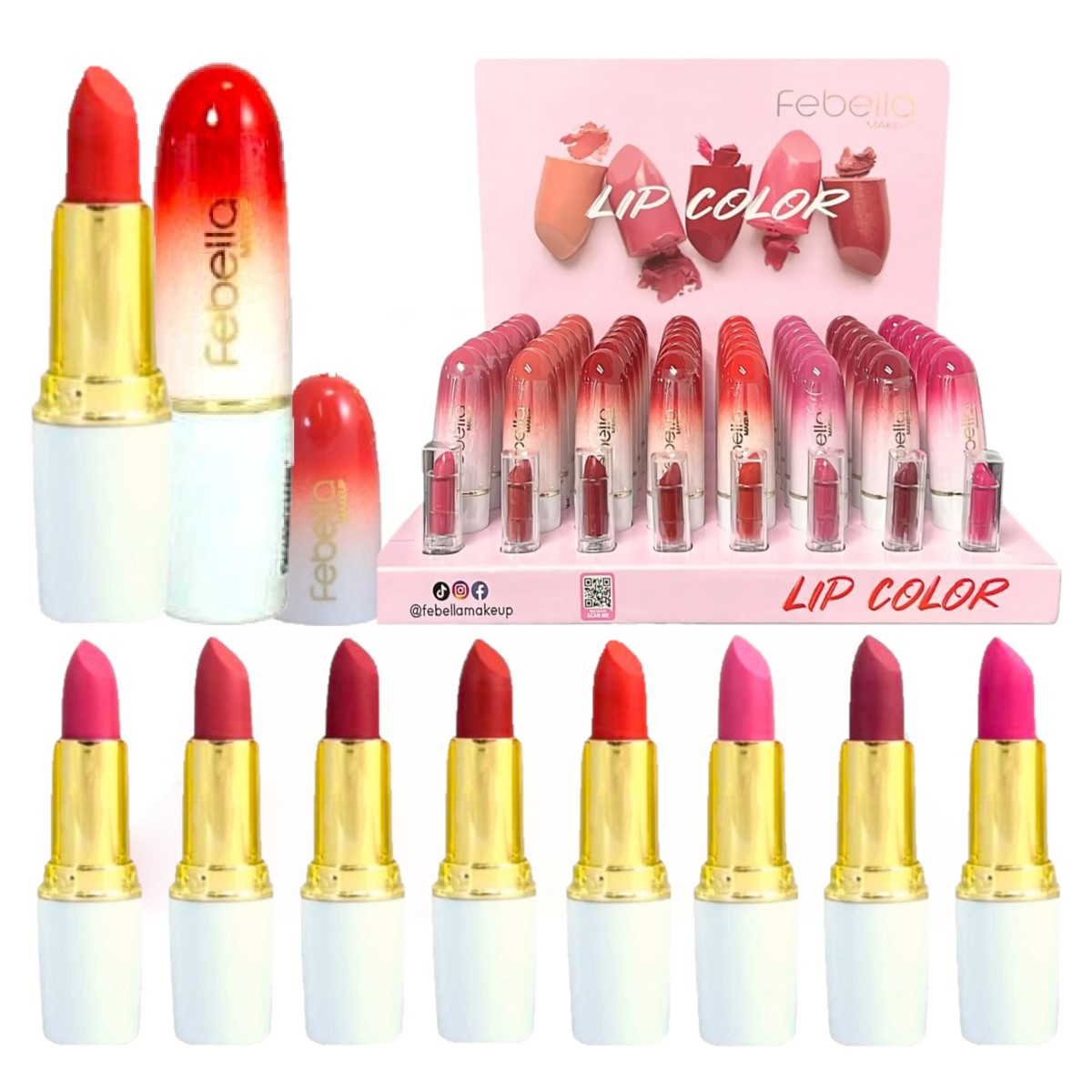 O Batom da Febella deixa um efeito lindo e tem uma variedade de cores.