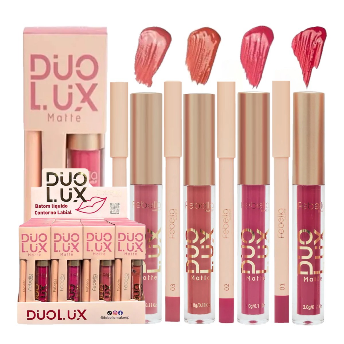 Febella - kit Batom Liquido + Lapis contorno labial - 24 Kit