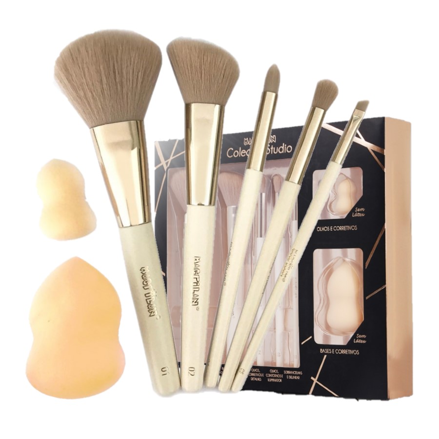 Kit de Pincel Proffisional Studio Macrilan CS100 ( 5 Pincéis e 2 Esponjas )