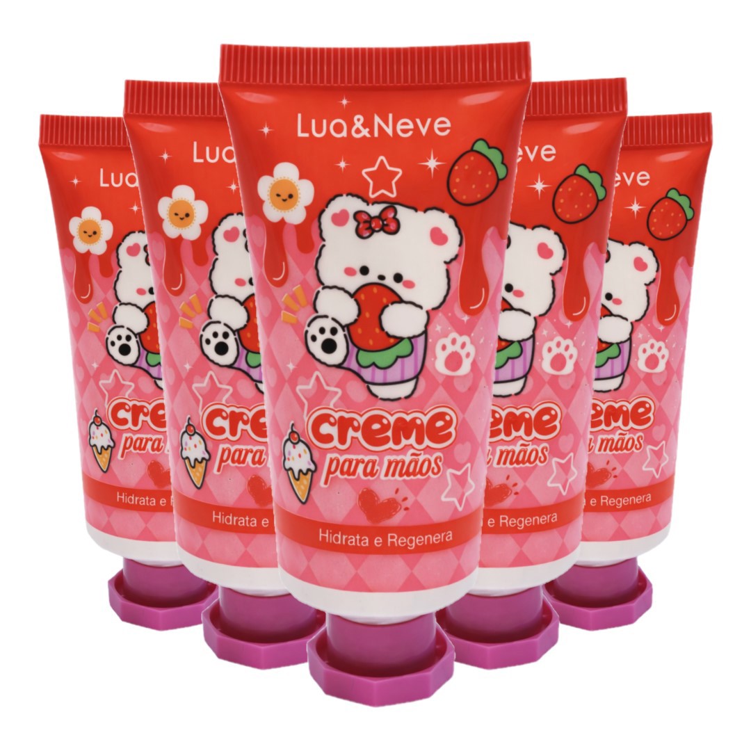 Sua embalagem super fofa, com temática de ursinho e morangos, traz um design encantador que combina com qualquer nécessaire. A textura é leve, de rápida absorção e não deixa sensação pegajosa, sendo ideal para aplicar várias vezes ao dia. Proteja suas mãos enquanto desfruta de uma pele visivelmente mais saudável e macia!