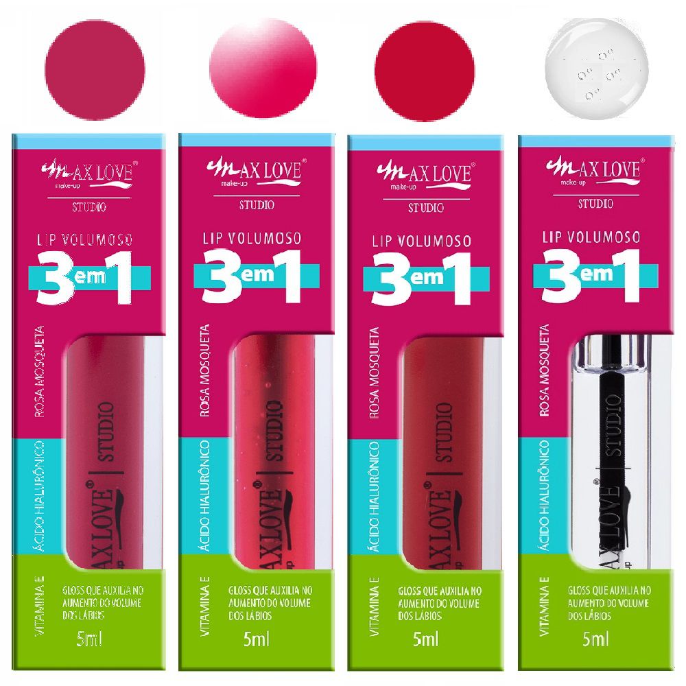 Max Love - Lip Gloss Volumoso 3 em 1 Kit C/4 sortidos