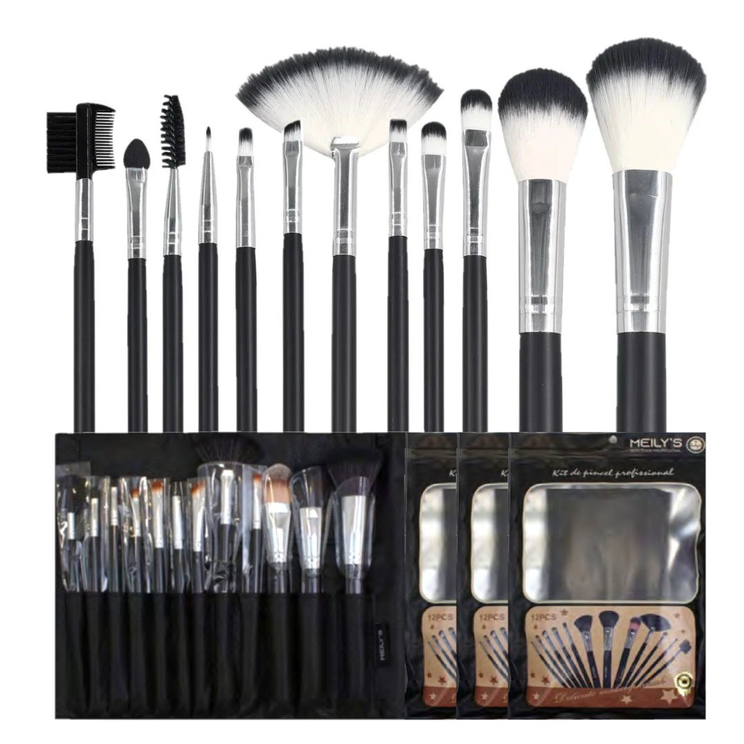 Eleve o nível da sua maquiagem com o Kit Meily’s. Composto por 12 pincéis selecionados, este conjunto cobre todas as etapas da sua rotina de beleza — da preparação da pele com base e corretivo à aplicação detalhada de sombras e iluminadores.