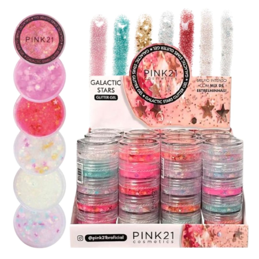 Pink 21 - Glitter Gel Mix de Estrelas Galactic Stars CS5458 - 12 Und
