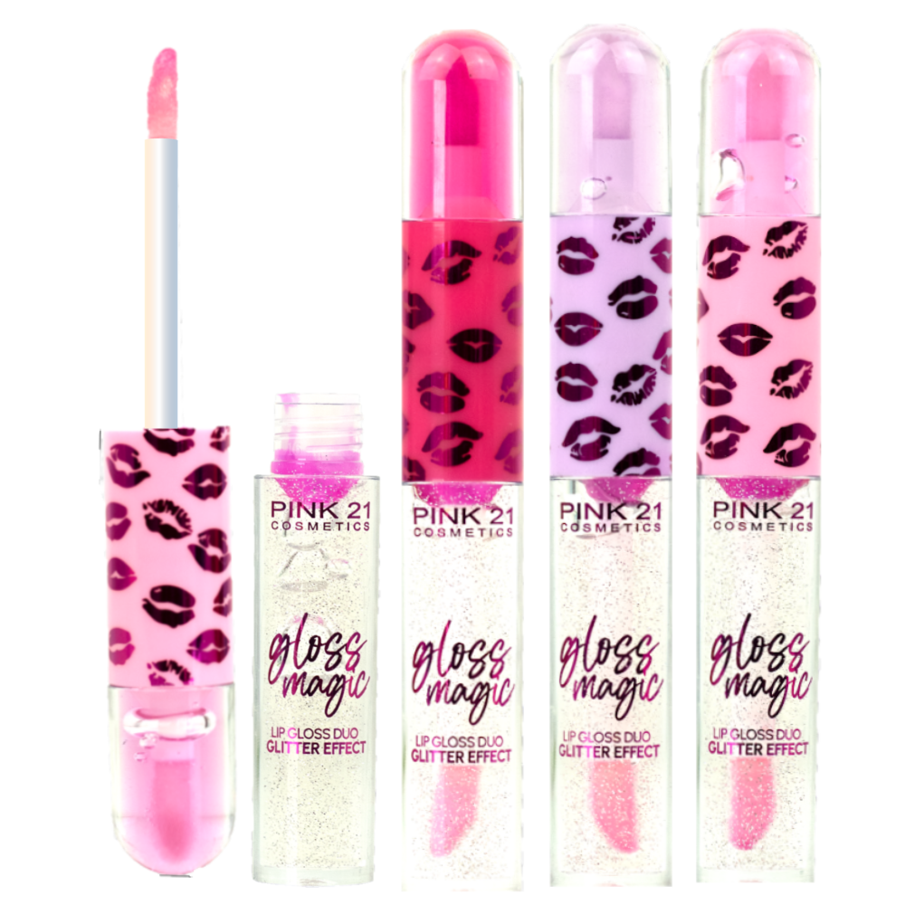 Pink 21 - Lip Gloss Duo Glitter Effect CS3672 - Kit C/12 Und