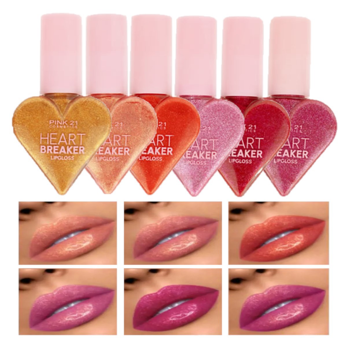 Pink 21 - Lip Gloss Heart Coração Glitter CS3696 A - 6 Und
