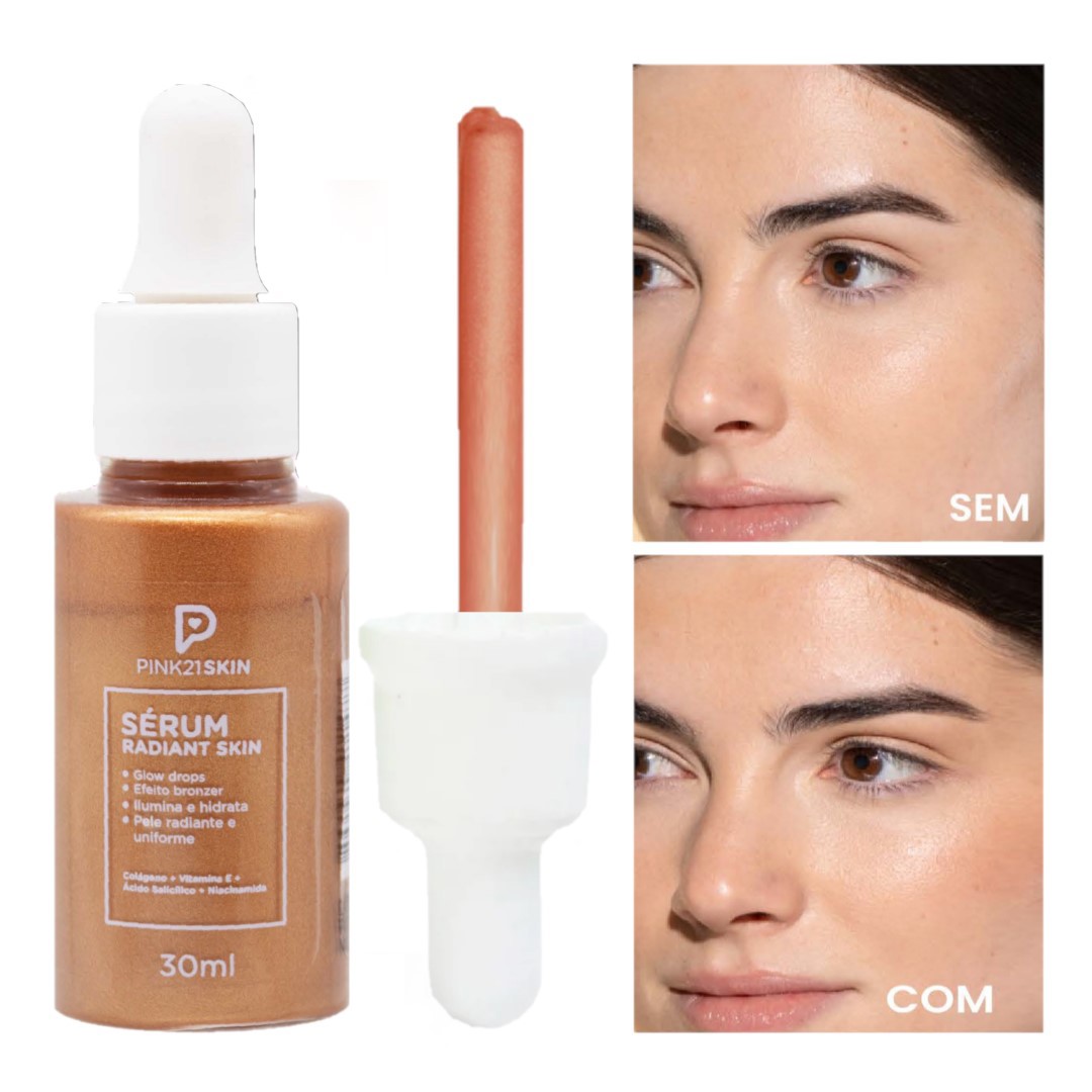 O Sérum Radiant Skin PK1011 da Pink21 é a combinação perfeita de tratamento e beleza, trazendo luminosidade, hidratação intensa e um toque de efeito bronzer para uma pele naturalmente iluminada.