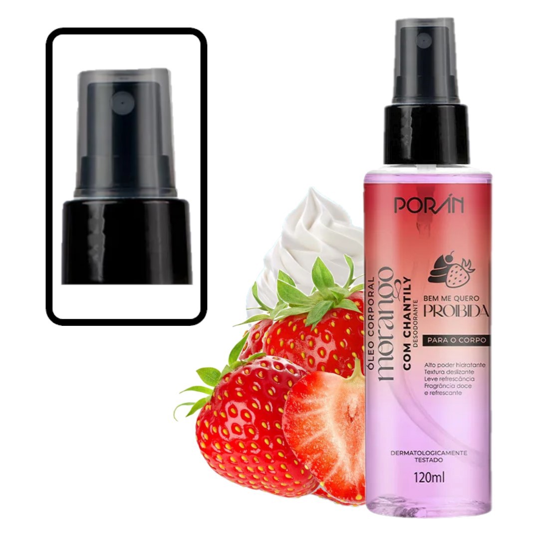 O Óleo Corporal Morango com Chantily possui alto poder hidratante, textura deslizante, proporcionando leve sensação de refrescância quando passado sobre a pele, de fragrância doce.