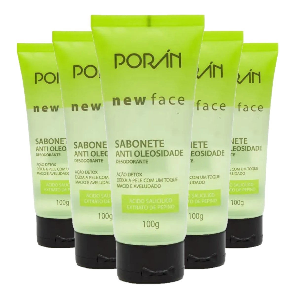 O Sabonete Antioleosidade New Face da Porán higieniza a pele enquanto proporciona um toque macio e aveludado, combatendo a oleosidade e com isso, prevenindo o aparecimento de acnes. Proporcionando perfume agradável. Possui extrato de pepino, ativo desodorante e ácido salicílico.
