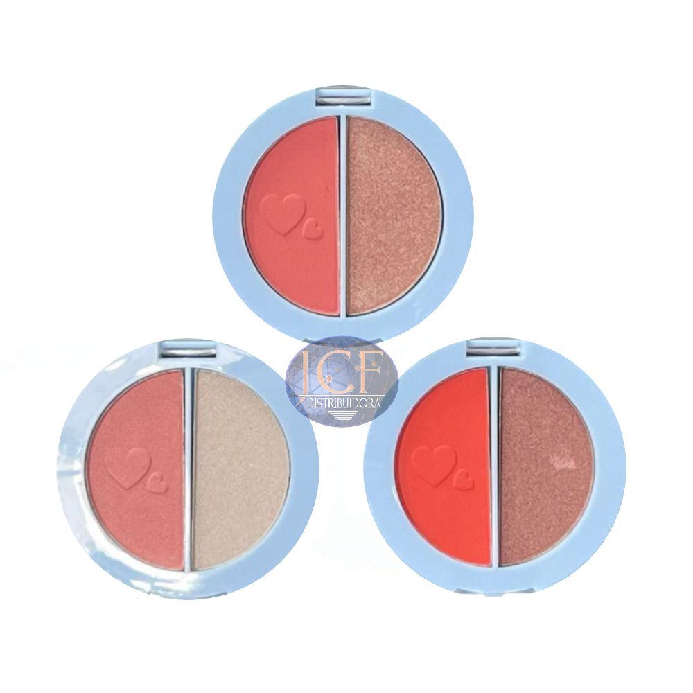 É uma paleta multifuncional contendo 1 Iluminador e 1 Blush Para criar diferentes looks!