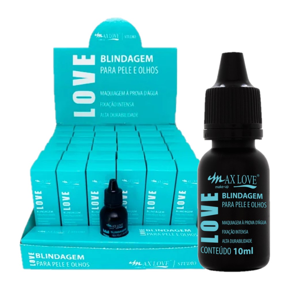 A Blindagem para Pele e Olhos Max Love, entrega três funções em um único produto: hidrata a pele, aumenta a resistência da make tornando-a à prova d'água e ainda pode ser utilizado como diluidor de maquiagem. Sua fórmula com Óleo de Rosa Mosqueta, Óleo de Farelo de Arroz e Extrato de Flor de Hibiscus, hidrata a pele enquanto auxilia na fixação da maquiagem. Recupera produtos que perderam sua textura cremosa por causa do ressecamento, como bases, corretivos líquidos, delineadores e batons. Também pode ser utilizado na sombra em pó para torná-la pastosa.