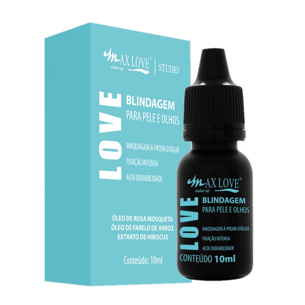 A Blindagem para Pele e Olhos Max Love, entrega três funções em um único produto: hidrata a pele, aumenta a resistência da make tornando-a à prova d'água e ainda pode ser utilizado como diluidor de maquiagem. Sua fórmula com Óleo de Rosa Mosqueta, Óleo de Farelo de Arroz e Extrato de Flor de Hibiscus, hidrata a pele enquanto auxilia na fixação da maquiagem. Recupera produtos que perderam sua textura cremosa por causa do ressecamento, como bases, corretivos líquidos, delineadores e batons. Também pode ser utilizado na sombra em pó para torná-la pastosa.
