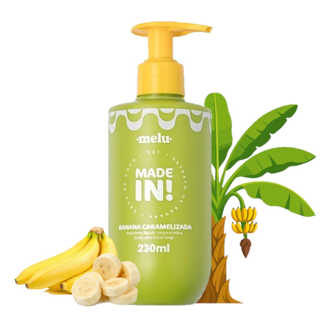 Dê um upgrade no seu momento de higiene com o Sabonete Líquido Corpo e Mãos Banana Caramelizada Made In Melu da Ruby Rose. Desenvolvido para quem ama praticidade sem abrir mão de um perfume irresistível, este sabonete é perfeito para deixar sua pele limpa, macia e extremamente cheirosa, seja no banho ou na pia do banheiro.