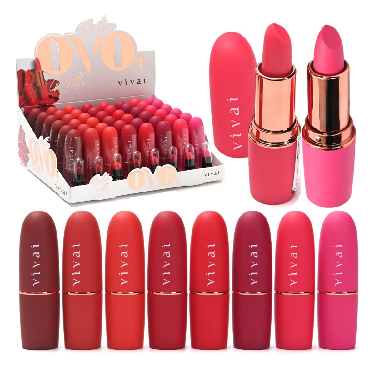 O Batom Matte Ovo da Vivai, possui 8 lindas cores com excelente cobertura, acabamento matte, cores incríveis e ótima fixação.