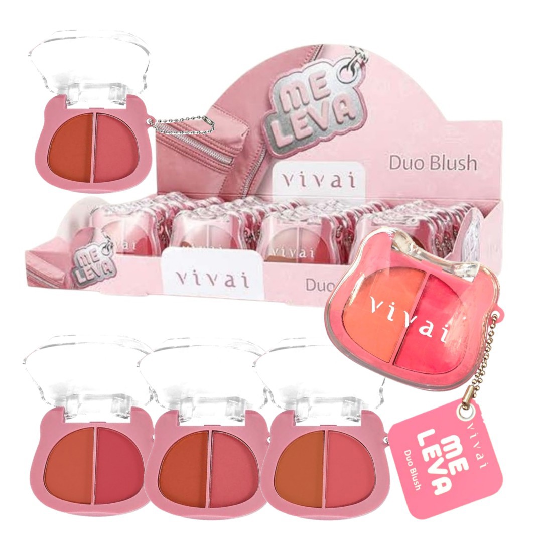 Blush Duo com Chaveiro Me Leva da vivai, são 2 tons de blush que se complementam, dão um toque de beleza natural, além de possuir uma embalagem fofa com chaveiro.