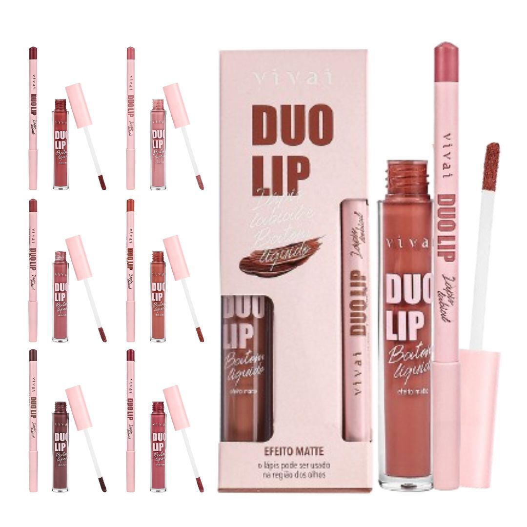 Se você busca o lábio perfeito com a praticidade que o seu dia a dia exige, o Duo Lip da Vivai é o aliado que faltava na sua nécessaire. Este conjunto exclusivo combina a precisão de um lápis labial macio com a sofisticação de um batom líquido de alta cobertura, ambos entregando um acabamento matte impecável que não abre mão do conforto. O grande diferencial está na versatilidade, pois o lápis foi desenvolvido com uma fórmula segura que permite o uso também na região dos olhos, transformando-se em um item multifuncional indispensável para criar looks monocromáticos e modernos. Com uma cor intensa e textura que desliza facilmente, você consegue desenhar o contorno dos sonhos e preencher com uma cor vibrante que dura por muito mais tempo.