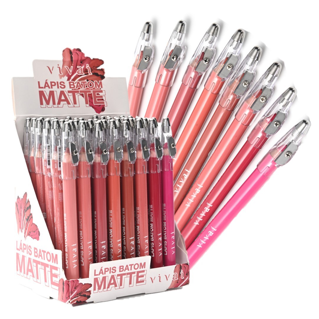 Eleve o nível da sua maquiagem com o Lápis Batom Matte da Vivai. Projetado para facilitar a aplicação, ele desliza suavemente sobre os lábios, proporcionando uma pigmentação impecável com aquele efeito opaco (matte) que a gente ama, sem ressecar.
